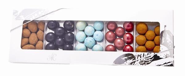 Dragée æske med 5 lakrids varianter fra Aalborg Chokolade