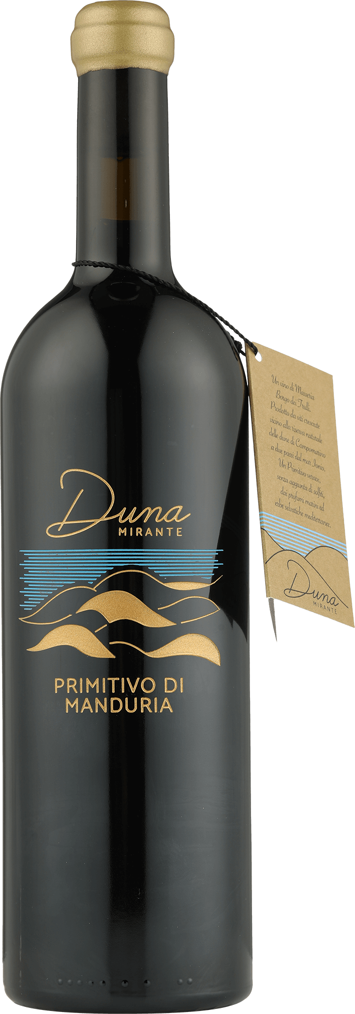 En vin fra Massesia Borgo dei Trulli. Vinen er produceret af vinstokke dyrket nær Compomarino-klitens naturlige reservat, et stenkast fra Det Ioniske Hav, en ægte primitivo uden tilsætning af sulfitter med havets dufte og vilde middelhavsurter.