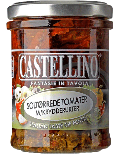 Castellino Soltørrede tomater i krydderurteolie * Lækre, velsmagende soltørrede tomater i krydderolie fra Italien.