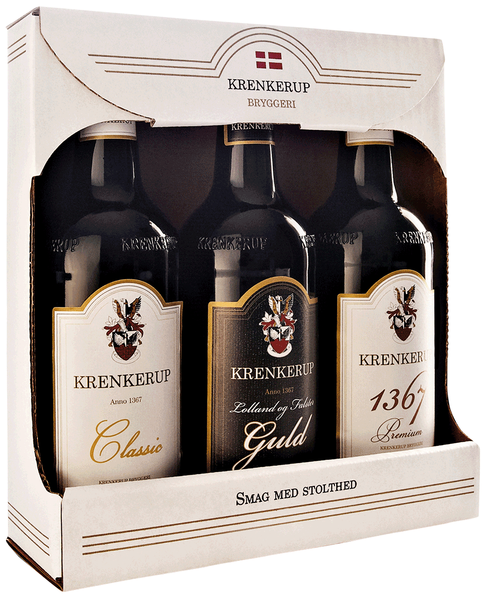 Krenkerup Bryggeri 3-pak specialøl - 3 x flaskeøl i gaveæske á 50 cl. Alle kvalitetsøl fra Krenkerup Bryggeri findes på 0,5 liter flasker. Præcis som indholdet har de også gjort noget særligt ud af flaske og etikette. Såfremt du har specielle ønsker til gaveæskens indhold, bedes du notere dem i kommentarfeltet, når du gennemfører ordrer, ellers sammensætter vi gaveæsken for dig.