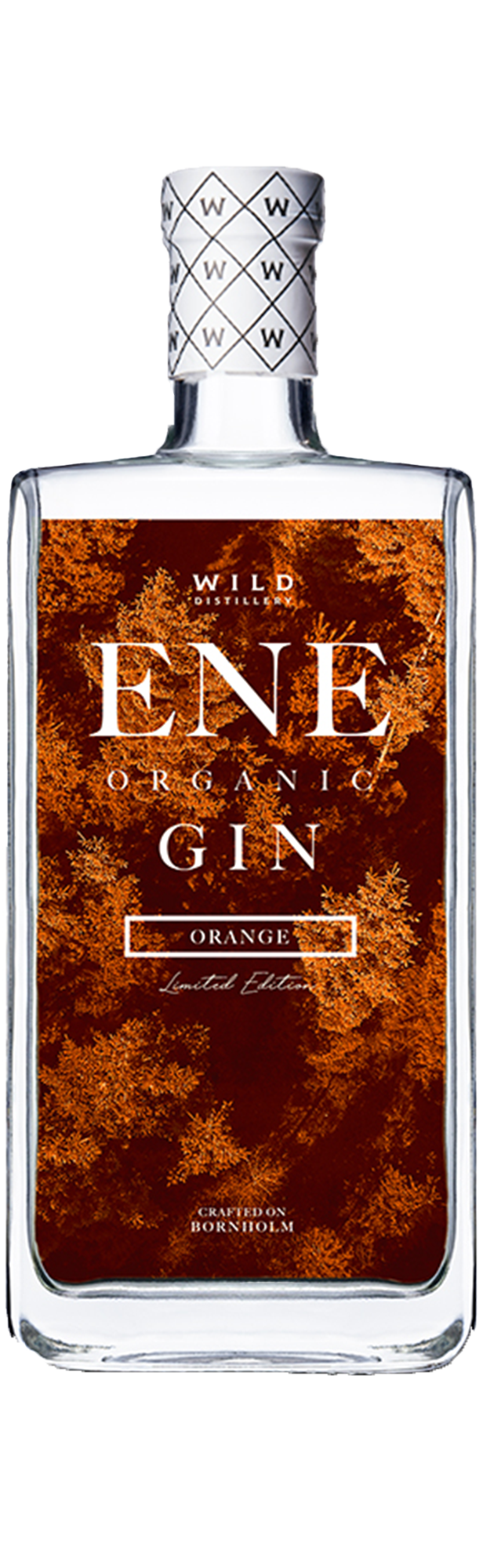 ENE Orange er det nyeste medlem i den økologiske gin serie, ENE. Orange er destilleret med både tørret appelsin og friske, økologiske appelsiner. Modsat de andre ENE varianter, som skal give hints og noter af deres smage, er meningen med denne gin, at den både skal dufte og smage af appelsin.