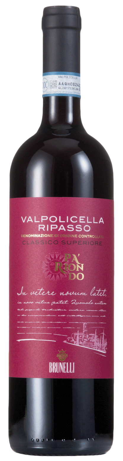 Ripasso Pariondo - Brunelli Classico Superiore 2018 - en vin i topklasse og med en flot intens rubinrød farve, med en rig og gennemtrængende duft, med strejf af sort ribs, brombær og friske sveskeblommer, samt en let vaniljeduft. Smagen er dyb, blød, koncentreret og kraftig.
