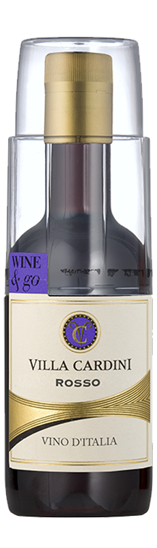 * Smart plastflaske med glas indeholdende Villa Cardini Rosso med glas 18,7 cl. De såkaldte shuttle-flasker indeholder 18,7 cl. og er en praktisk kombination af glas og flaske, hvor glasset agerer låg for flasken. Så der er ikke behov for ekstraudstyr. De små flasker er perfekte til togturen, picnic'en, på stranden og ved andre lejligheder, hvor "convenience" er kodeordet.