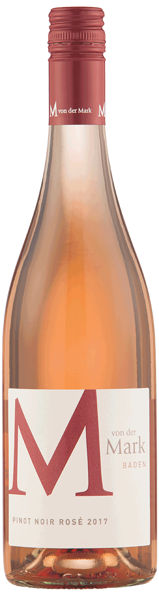 Pinot Noir Rosé M - Weingut Von der Mark Baden 2017. * En vaskeægte rosé efter den traditionelle metode, det vil sige med maceration på skallerne og "håndholdt" gæring i en blanding af gamle fade og rustfrit stål. Denne kvalitets rosé har en dyb, flot laksefarve, en fin frugtrig næse præget af jordbær og er vidunderlig sprudlende på tungen.