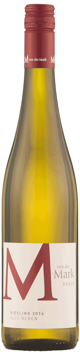 Riesling M - Weingut Von der Mark Baden 2017 * tysk Riesling af høj kvalitet. Vinen er fuldstændig ren og klar. En elegant vin med en fin syrebalance – og et langt liv foran sig. Druerne stammer fra gamle Rieslingbeplantninger, og udelukkende fra de bedste marker. Vinifikationen er foregået i rustfri ståltanke. Det er på alle måder en vin, der er konkurrenterne fra den anden side af floden overlegen med sin friske og ranke stil, og med udpræget ’Alte Reben’-karakter, det vil sige intens og krydret. Den meget modne frugt giver en fin sødme til vinen, der ellers er absolut tør analytisk set.