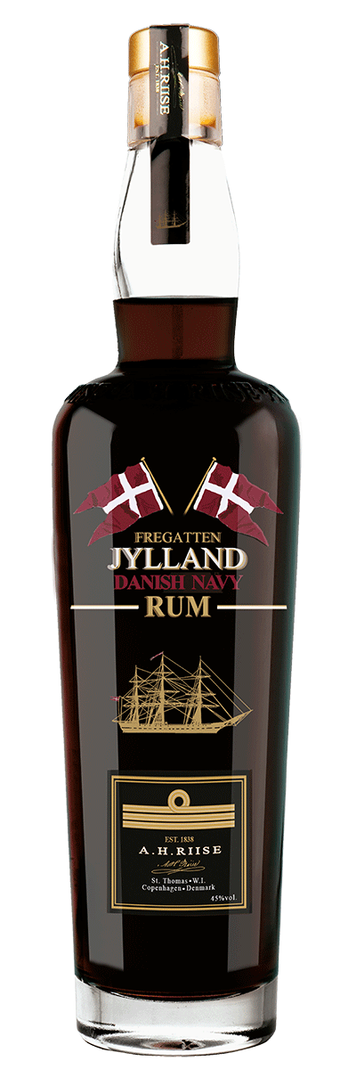 A. H. RIISE Danish Navy rum - FREGATTEN JYLLAND - 45 % * Rommen Fregatten Jylland er en eksklusiv udgave af den populære Royal Danish Navy Rom. Den giver dig en mulighed for at smage på en rom, der holdt humøret højt for danske sømænd tilbage i 1800-tallet. A.H. Riise Fregatten Jylland Rum er blended af en lang række forskellige romdestillater, hvoraf nogle af dem er helt op til 20 år gamle. Resultatet er en prægtige rom med en alkoholprocent på 45 %.