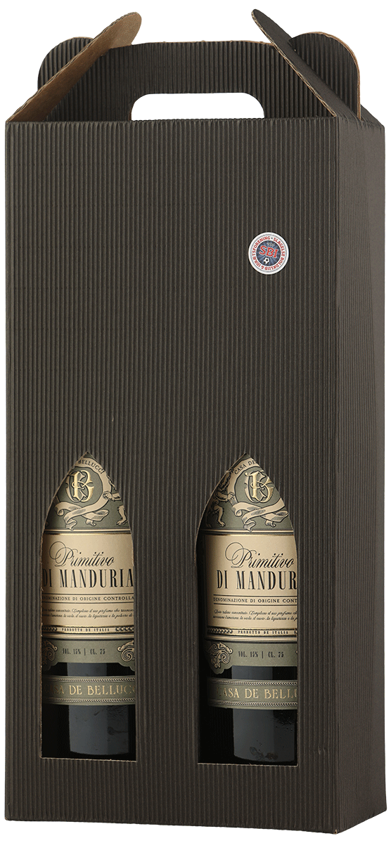 Primitivo di Manduria Casa de Bellucci DOC 2016 - 15 % Alkohol i 2 stk. gaveæske